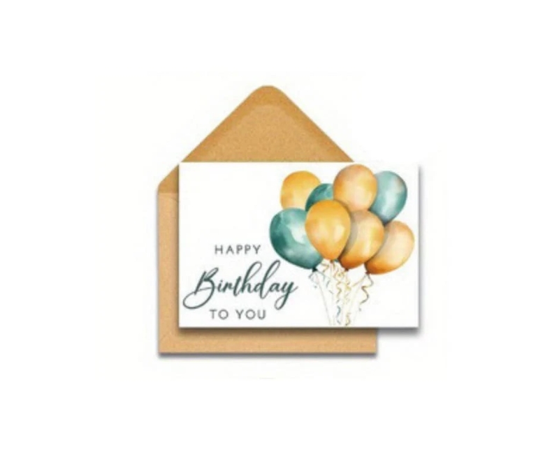 Celebrate special moments with this Elegant Green & Gold Balloon Birthday Card. Featuring a sophisticated watercolor design with soft green and golden balloons, this card exudes charm and warmth. Perfect for sending heartfelt birthday wishes, this premium-quality card is ideal for both friends and loved ones. Comes with a classic kraft envelope for an extra touch of elegance.